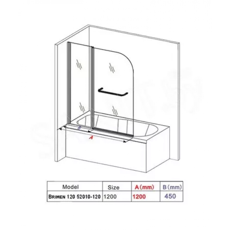 Стеклянная шторка для ванны Roxen Brimen 120 см, 52010-120