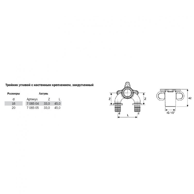 TECEflex 708626 Тройник угловой с настенным креплением, закругленный, бронза 20 x 1/2" x 20