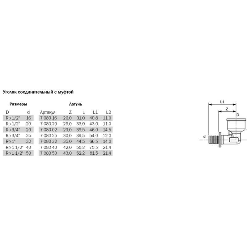 TECEflex 768002 Уголок соединительный с муфтой 20 х Rp 3/4
