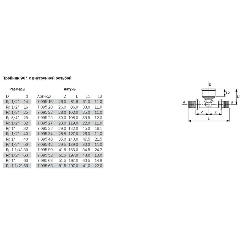 TECEflex 769522 Тройник 90° с внутренней резьбой 25 х Rp 1/2" х 25