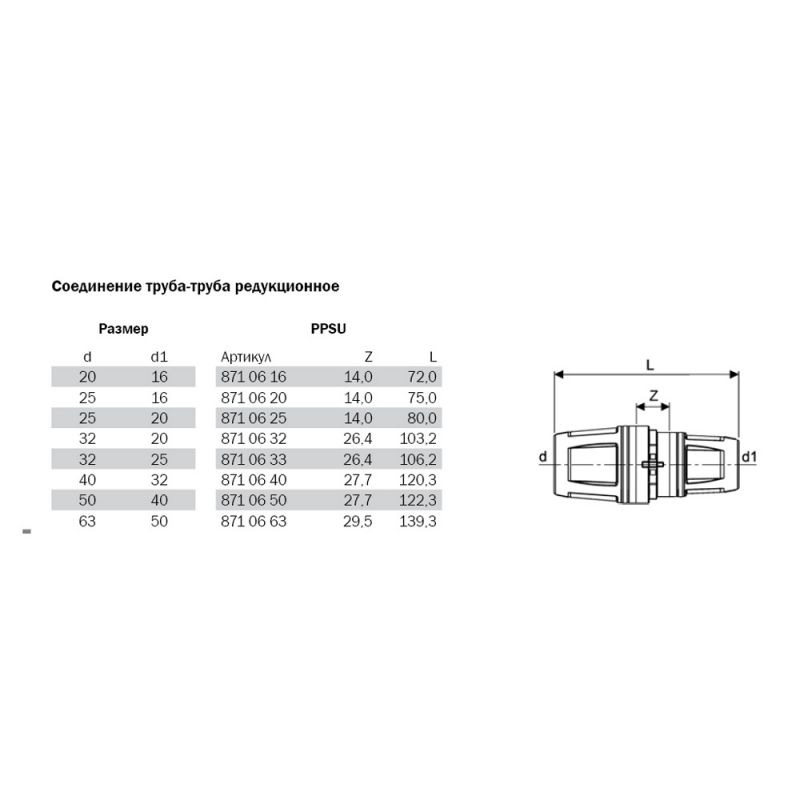 TECElogo 8710616 Соединение труба-труба редукционное 20 х 16 PPSU