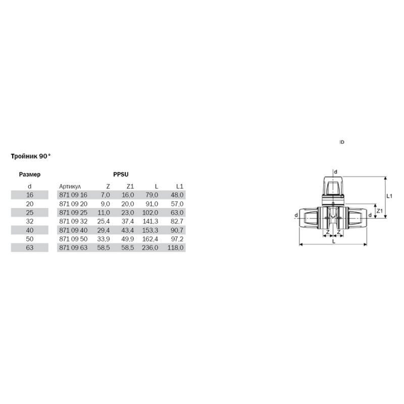 TECElogo 8710920 Тройник 90° 20 х 20 х 20 PPSU