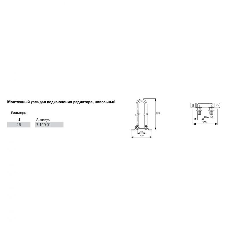 TECEflex 714901 Монтажный узел для подключения радиатора 16 x 333 мм, напольный
