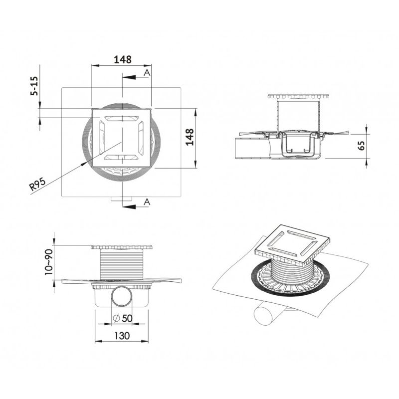 Трап для душа Berges Wasserhaus ZENTRUM Antik 150х150 94365