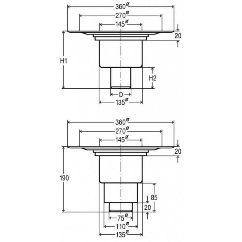Трап VIEGA 150х150 мм вертикальный выпуск DN70/100 , 557201