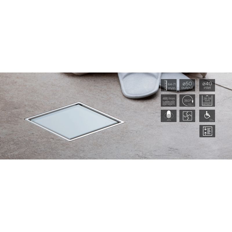 Трап водосточный Pestan Confluo Standard DRY1 White Glass 100х100 белое стекло с рамкой сталь, 13000104