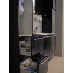 Фасады «АКВАТОН» - это панели МДФ высшего качества Е1 производства Германии, корпус изготовлен из немецких влагостойких ДСП, покрытых слоем меламина. Кстати, обращает на себя внимание приятный мягкий блеск мебельных панелей. Он обусловлен точным технологическим процессом обработки поверхности: фасад и корпусные детали «АКВАТОН» покрывают несколькими слоями полиуретанового грунта и слоем высокоглянцевой эмали.