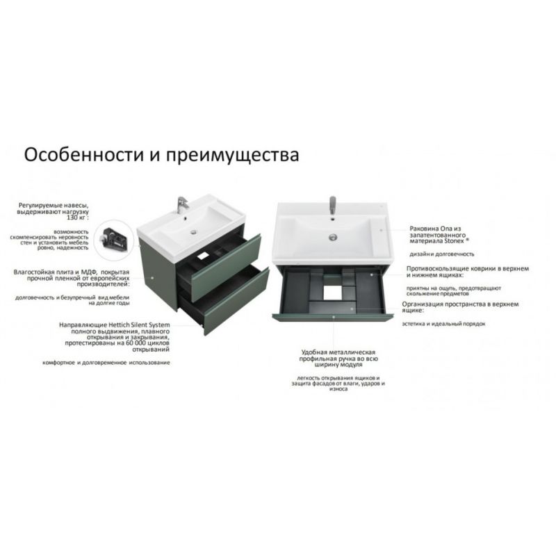 Тумба с умывальником Roca Ona 80 см 857630513 + ZRU9307562 зеленый матовый