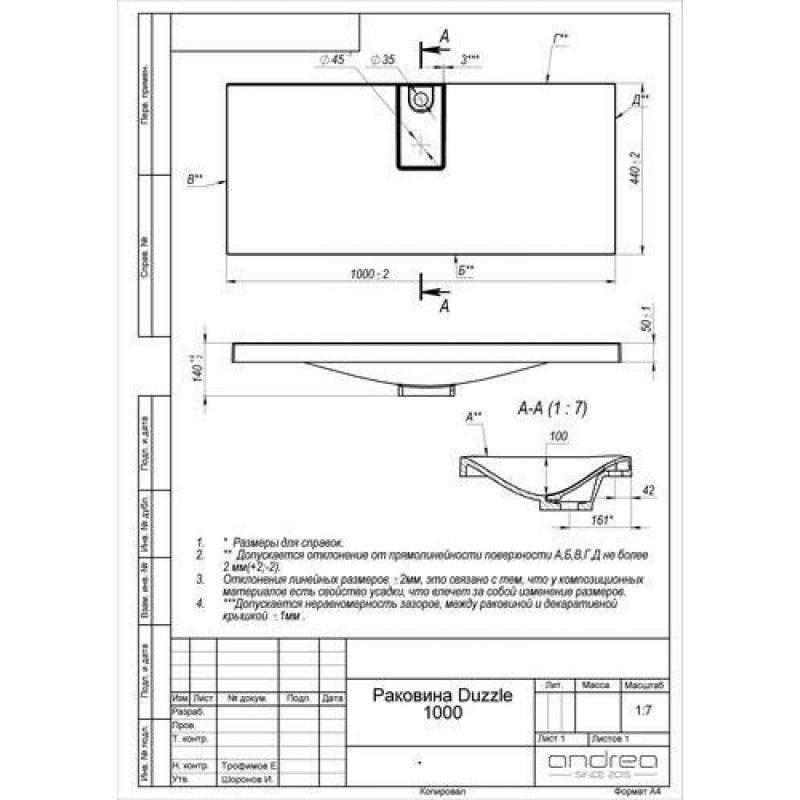 Умывальник Andrea Dazzle 1000