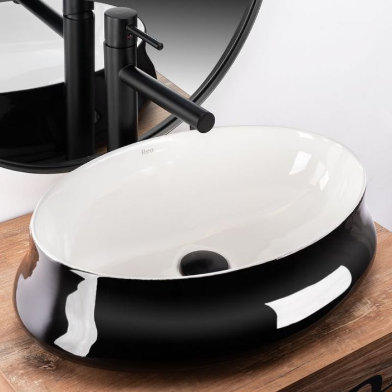 Умывальник на столешницу Rea Angela White Black