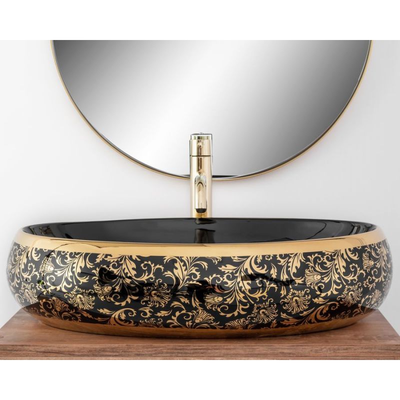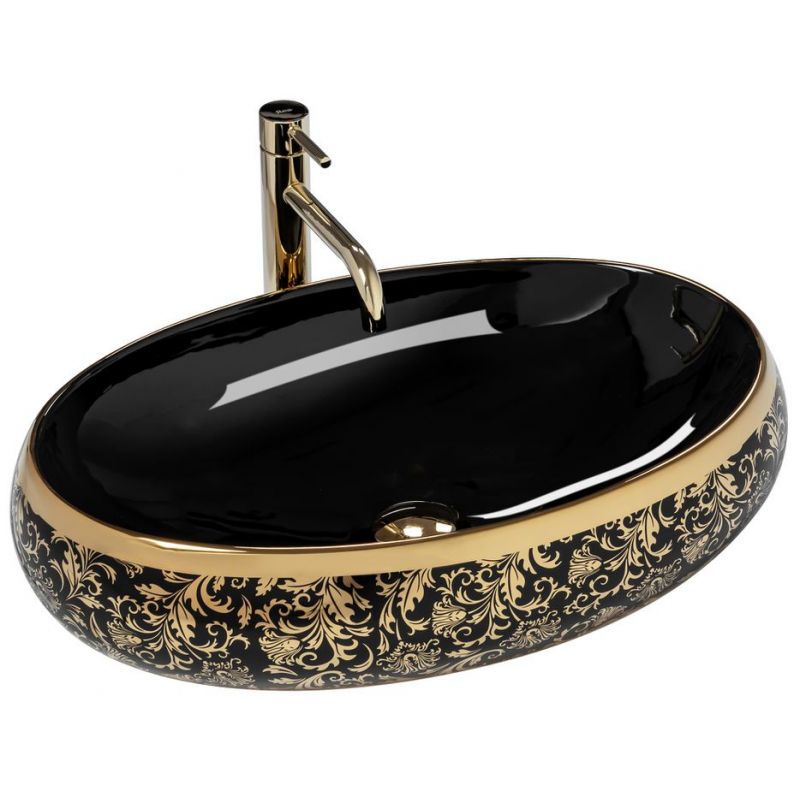 Умывальник на столешницу Rea Melania Black / Gold