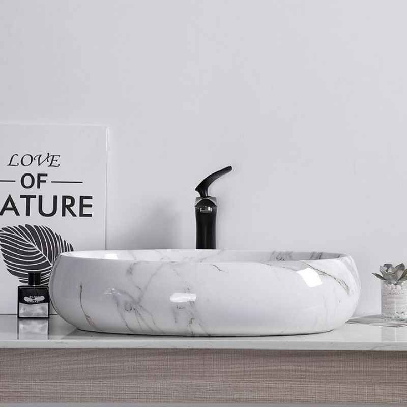 Умывальник на столешницу Rea Melania Shiny Aiax Marble