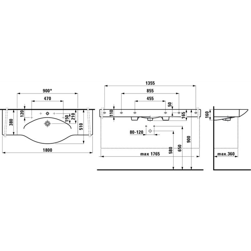 Умывальник столешница Laufen Palace 811708 180x51, подрезаемый