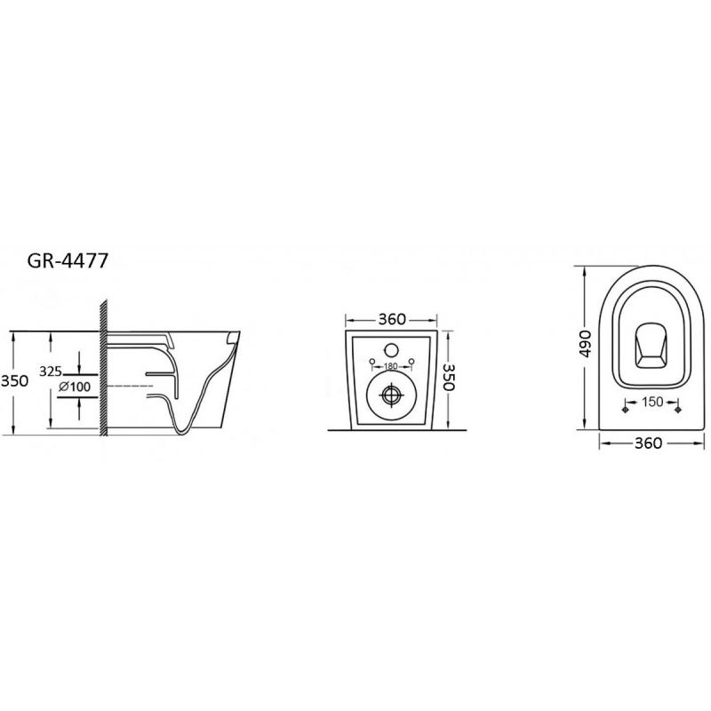 Унитаз подвесной Grossman GR-4477 49х36 безободковый/тонкая крышка