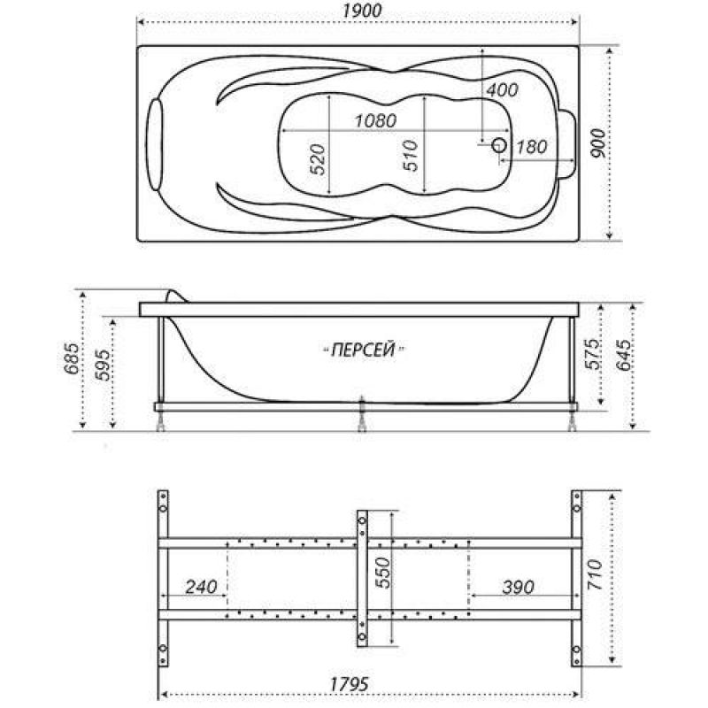Ванна акриловая Triton Персей Экстра 190x90