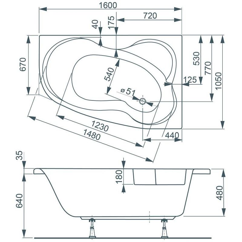 Ванна акриловая Vagnerplast Melite 160x105 R правая