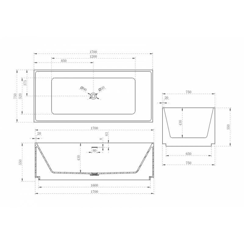 Ванна из искусственного камня ABBER Stein AS9602 белая матовая