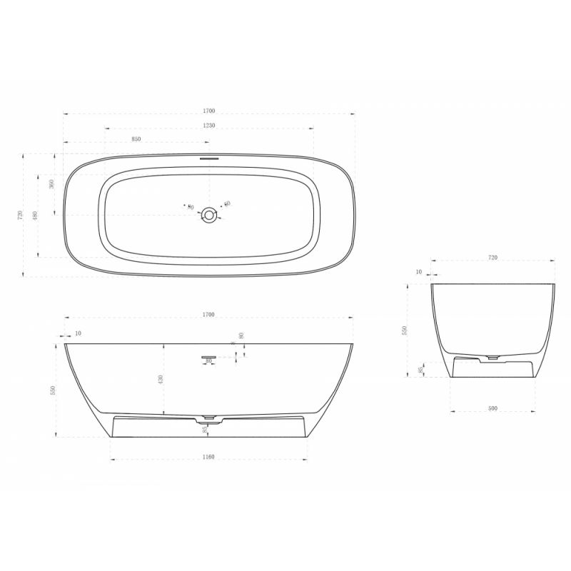 Ванна из искусственного камня ABBER Stein AS9612-1.7 белая матовая