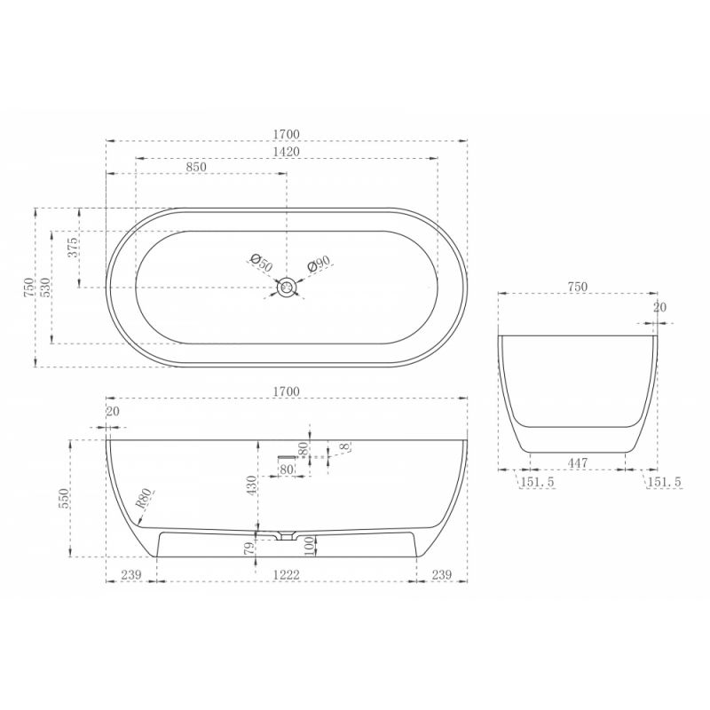 Ванна из искусственного камня ABBER Stein AS9613-1.7 белая матовая