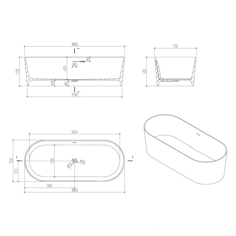 Ванна из искусственного камня ABBER Stein AS9614 белая матовая