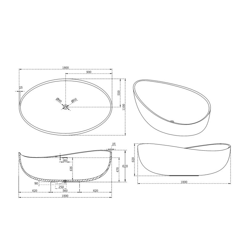 Ванна из искусственного камня ABBER Stein AS9639 белая матовая