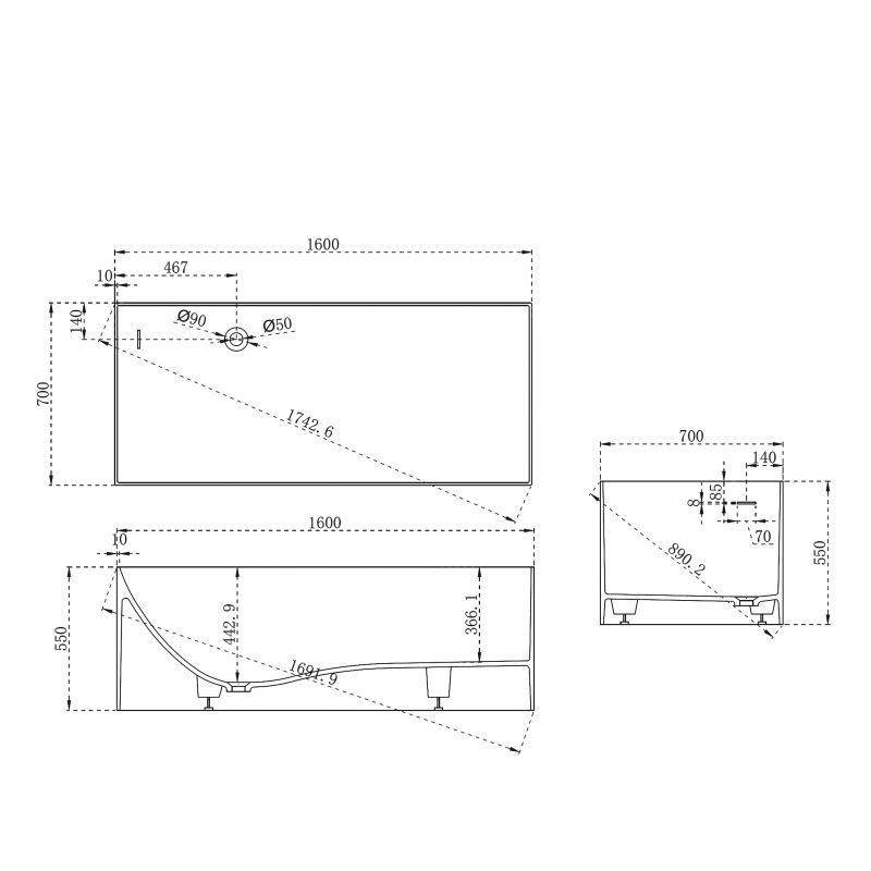 Ванна из искусственного камня ABBER Stein AS9640-1.6 белая матовая