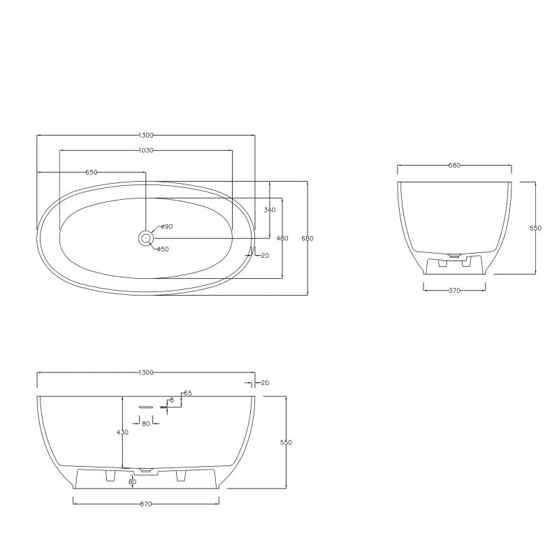 Ванна из искусственного камня ABBER Stein AS9641-1.3 белая матовая