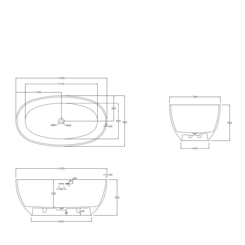 Ванна из искусственного камня ABBER Stein AS9641-1.4 белая матовая