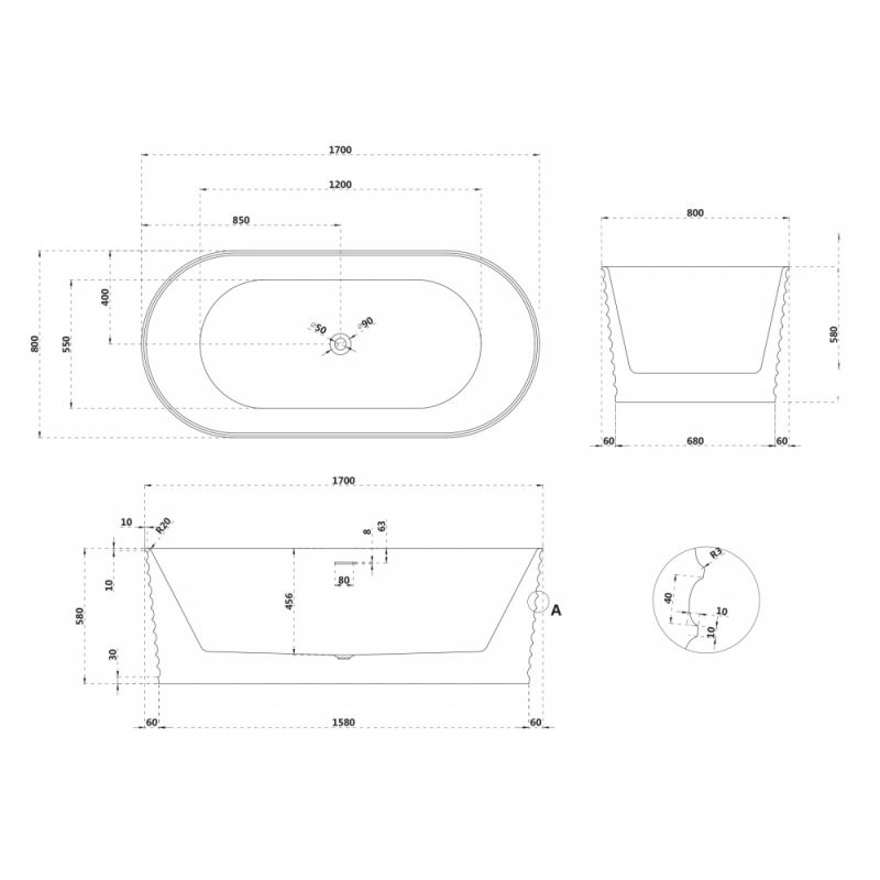 Ванна из искусственного камня ABBER Stein AS9650 белая матовая