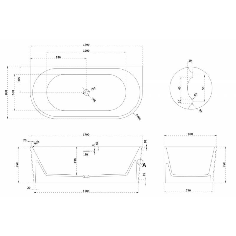 Ванна из искусственного камня ABBER Stein AS9652 белая матовая