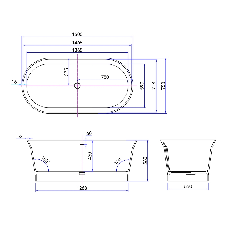 Ванна из искусственного камня Roxen Adel 150x75