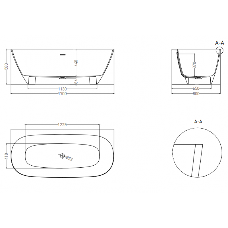 Ванна каменная UMY SIDE KIT 170x80 U-Solid, с переливом, цвет белый матовый