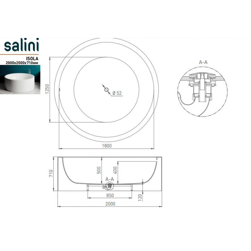 Ванна отдельностоящая Salini ISOLA 200x200 (S-Sense, матовый)