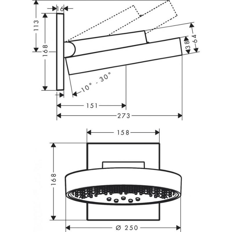 Верхний душ Hansgrohe Rainfinity 250 3jet с настенным разъемом 26232700
