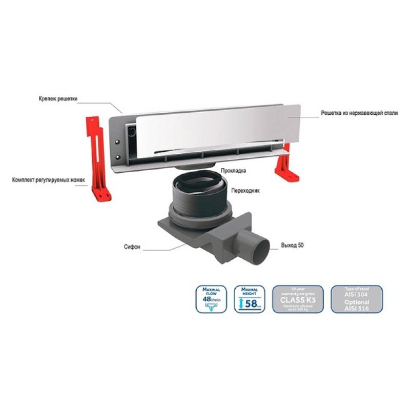 Нагрузка на решетку (в соответствии с EN 1253) - класс (K3 выдерживает до 300 кг давления);