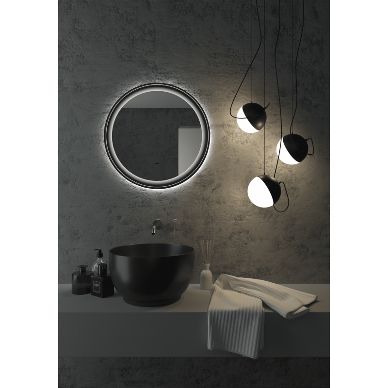 Зеркало Континент Planet Black LED D800 ореольная теплая подсветка и Б/К сенсор